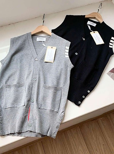 THOM BROWNE 소매 4-바 남여공용 니트 조끼