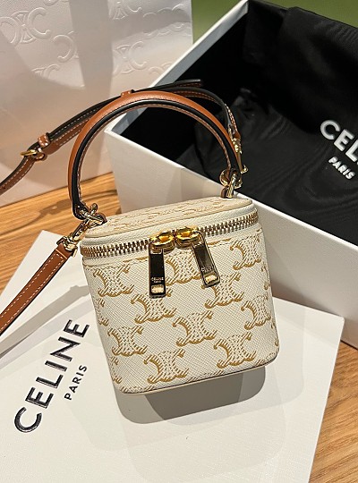셀린느 트리옴페 캔버스 & 카프스킨 미니 베사체 탄