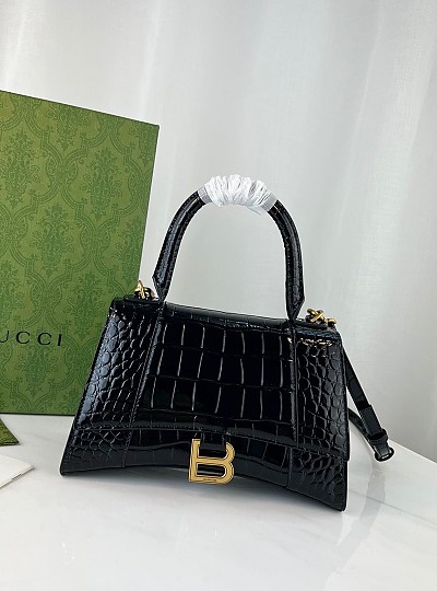 구찌 x 발렌시아가 Hourglass 블랙 여성 핸드백